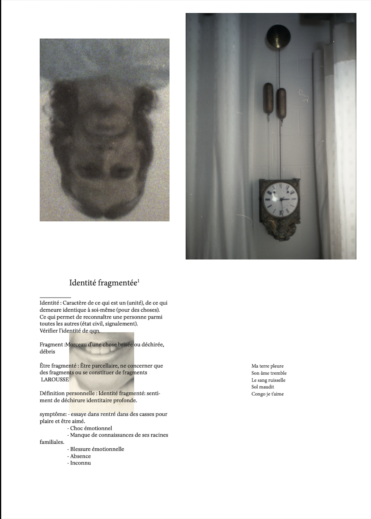 Identité fragmentée est un journal retraçant l'histoire d'une jeune métisse, née d'un père blanc et d'une mère noire durant les années 50 au Congo. Il raconte son kidnapping ainsi que son placement dans un pensionnat tenu par des religieuses au
